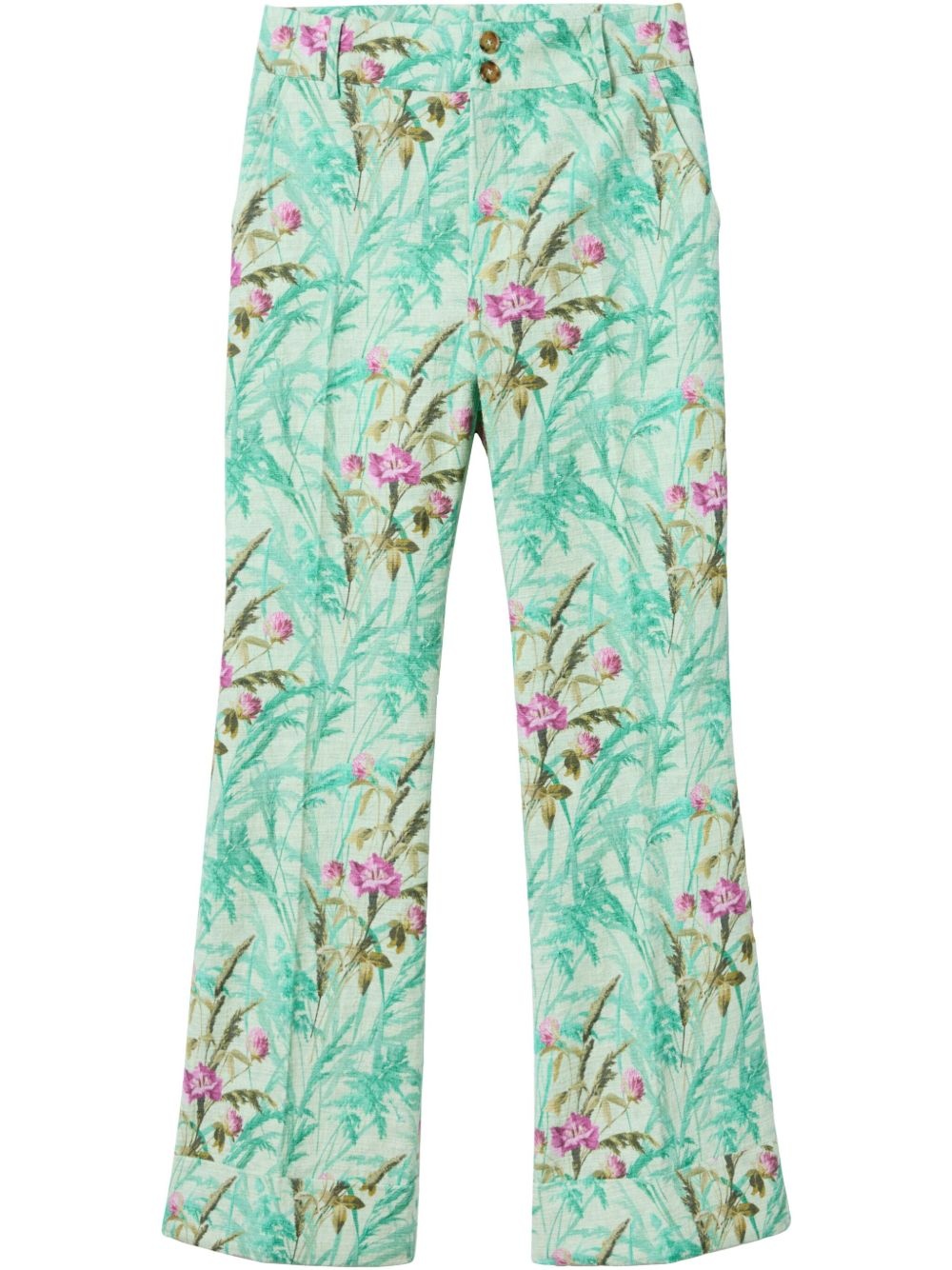 Hendrix trousers Highlights - Mint green - Concealed front fastening - Belt loops - Two diagonal pockets to the sides - All-over floral print Made in Italy Composition Cotton 98%, Elastane 2%