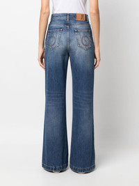 high-waisted flared jeans Crafted in Italy, these classic flared jeans by La DoubleJ sit high on the waist, falling to a flattering long length. Their timeless silhouette is rendered in a dark blue hue with a slight bleaching effect at the knee. Highlights - Blue - Cotton - Denim - Bleached effect - High-waisted - Belt loops - Concealed fly and button fastening - Classic five pockets - Logo patch to the rear - Flared Made in Italy Composition Cotton 100% SIZE & FIT Model measurements Height 5 ft 10 in(1.79 m) Bust/Chest 33.07 in(84 cm) Hips 35.82 in(91 cm) Waist 24.01 in(61 cm) FittingInformation Designed with a flared hem, these jeans allow for a close fit at the waist with a slim fit over the leg and widening towards the hem Sturdy and hard-wearing, this denim piece offers no stretch This piece fits true to size – take your usual size