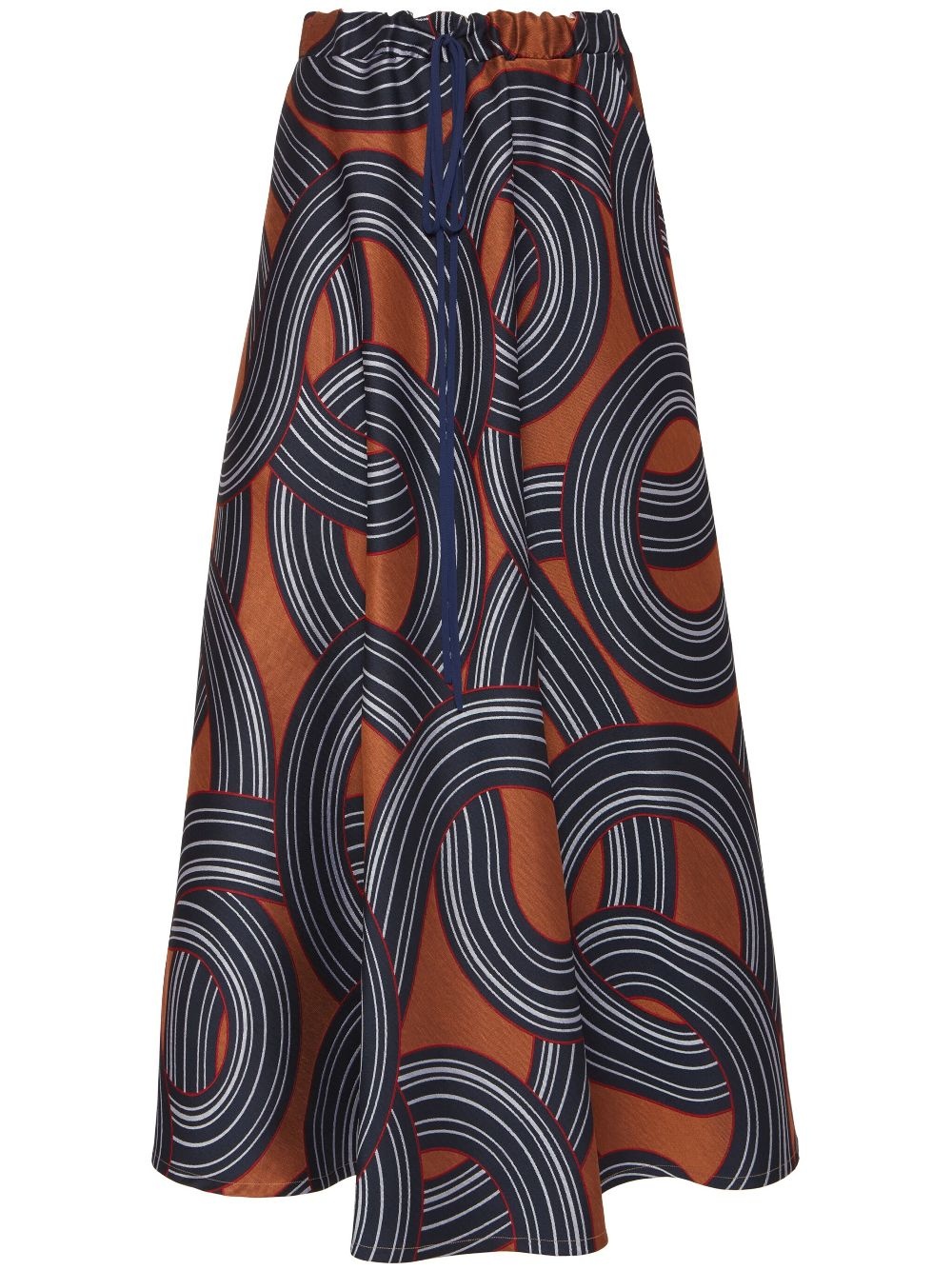 jacquard midi skirt Highlights - Navy blue - Drawstring fastening waist - Two side inset pockets - Patterned jacquard Made in Italy Composition Outer: Polyester 57%, Recycled Polyester 33%, Viscose 10% Lining: Polyester 100%