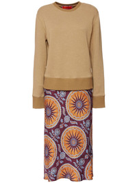 Jazzy midi dress Highlights - Multicolour - Silk/cotton - Layered design - Colour-block panelled design - Crew neck - Long sleeves - Embroidered logo to the rear - Straight hem - Mid-length Made in Italy Composition Silk 50%, Cotton 50%