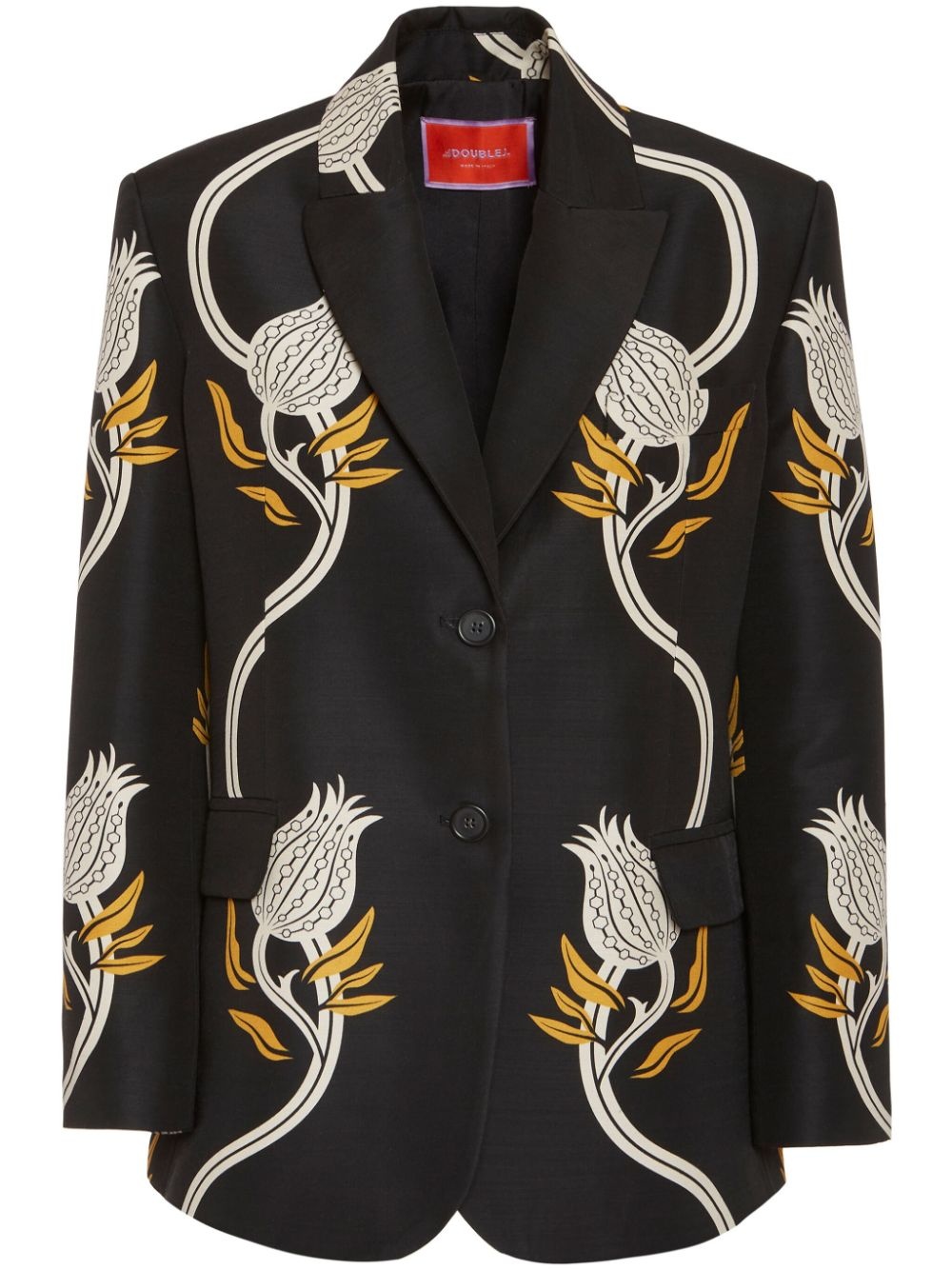 Jones blazer Highlights - Black/white - Wool blend - Patterned floral print - Front button fastening - Peak lapels - Long sleeves - Buttoned cuffs - Front flap pockets - Straight hem Made in Italy Composition Wool 76%, Polyamide 24%