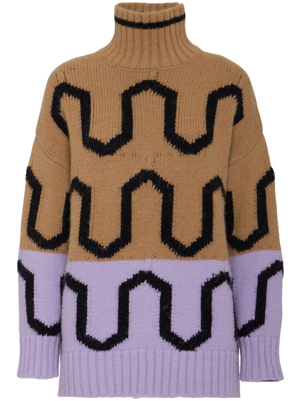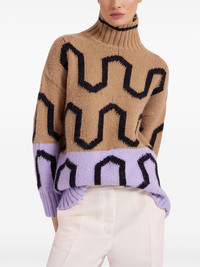 knitted jumper Highlights - Camel brown - Knitted construction - Geometric embroidery - High neck - Long sleeves - Ribbed cuffs and hem - Straight hem Made in Italy Composition Acrylic 46%, Alpaca Wool 34%, Polyamide 14%, Polyester 6%
