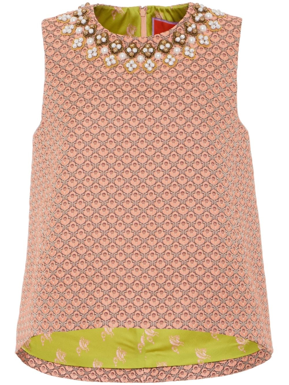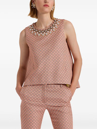 La Scala embroidered top Highlights - Light pink - Patterned jacquard - Bead embellishment - Crew neck - Rear zip fastening - Sleeveless - Curved hem - Floral-print lining - Trapeze silhouette Made in Italy Composition Polyester 76%, Polyamide 24%