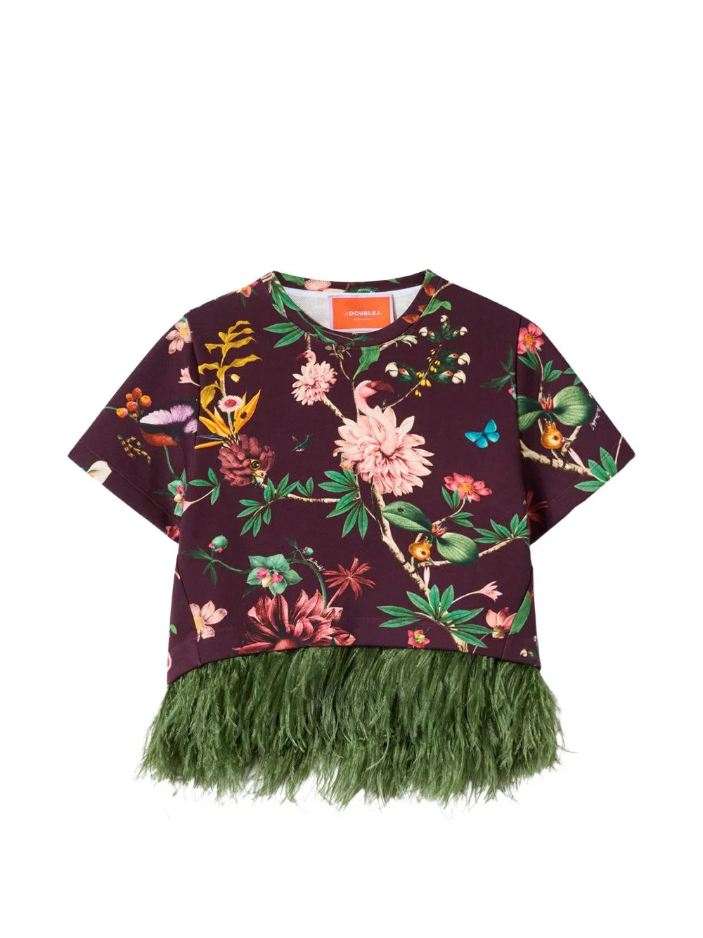 La Scala floral T-shirt Highlights - Purple - Floral print - Round neck - Feather trim - Short sleeves - Unfortunately, we are unable to ship this item outside of japan. Made in Italy Composition Cotton 98%, Ostrich Feather 2% Washing instructions Read Manufacturer Guidelines