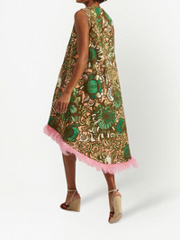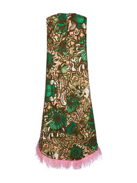La Scala graphic-print dress olive green/multicolour stretch-cotton/ostrich feather all-over graphic print feather detailing round neck rear zip fastening sleeveless high-low hem Made in Italy Composition Cotton 96%, Ostrich Feather 2%, Elastane 2% Washing instructions Read Manufacturer Guidelines