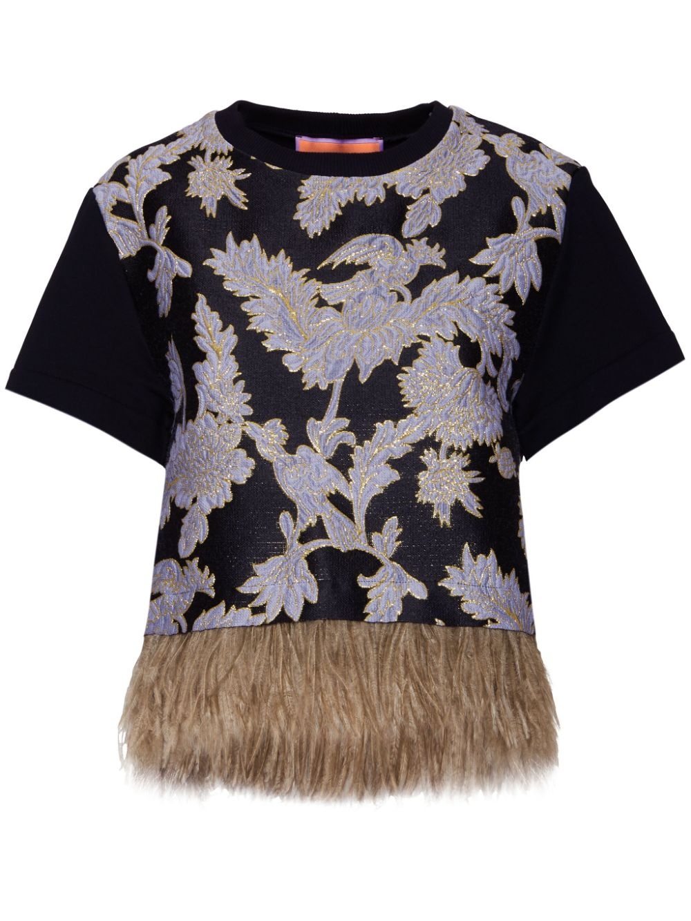 La Scala T-shirt Highlights - Black - Feather detailing - Crew neck - Short sleeves - This item comes from our partner boutiques in a variety of countries and cannot be shipped outside its region (either us, uae, or the eu & uk). please check the country of origin in the shipping & free returns tab or your shopping bag to make sure it can be delivered to your location. Made in Italy Composition Marabou Feathers 100%, Polyester 42%, Wool 22%, Acrylic 22%, Other fibres 8%, Silk 6%