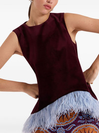 La Scala top Highlights - Bordeaux red/baby blue - Ostrich feather - Velvet finish - Rear zip fastening - Round neck - Sleeveless - Flared hem Made in Italy Composition Polyester 42%, Cotton 37%, Metal 9%, Silk 7%, Polyamide 5%