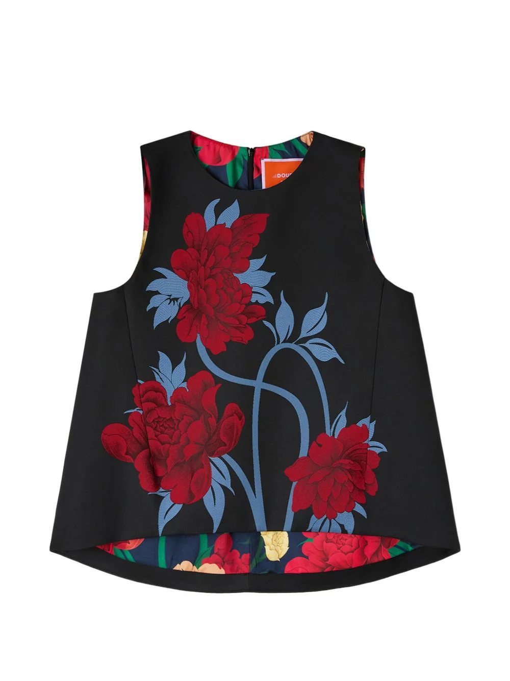 La Scala top Highlights - As far as interesting silhouettes go, the la scala top may win the gold star. an asymmetrical trapeze shape alluring on babes of all shapes and sizes, it’s crafted in our glorious jacquard for a hint of structure and plenty of sass. maximalists and print-curious babes alike will adore this fabulous peony print on navy blue, whether you go sassy with contrast pants or sophisticated over a white shirt. - Garment fit: regular - Hand placed jacquard - Unlined - Made in italy - The model is 180 cm / 5′ 11″ tall and wears a size s Made in Italy Composition Polyester 72%, Recycled Polyester 28% Washing instructions Read Manufacturer Guidelines