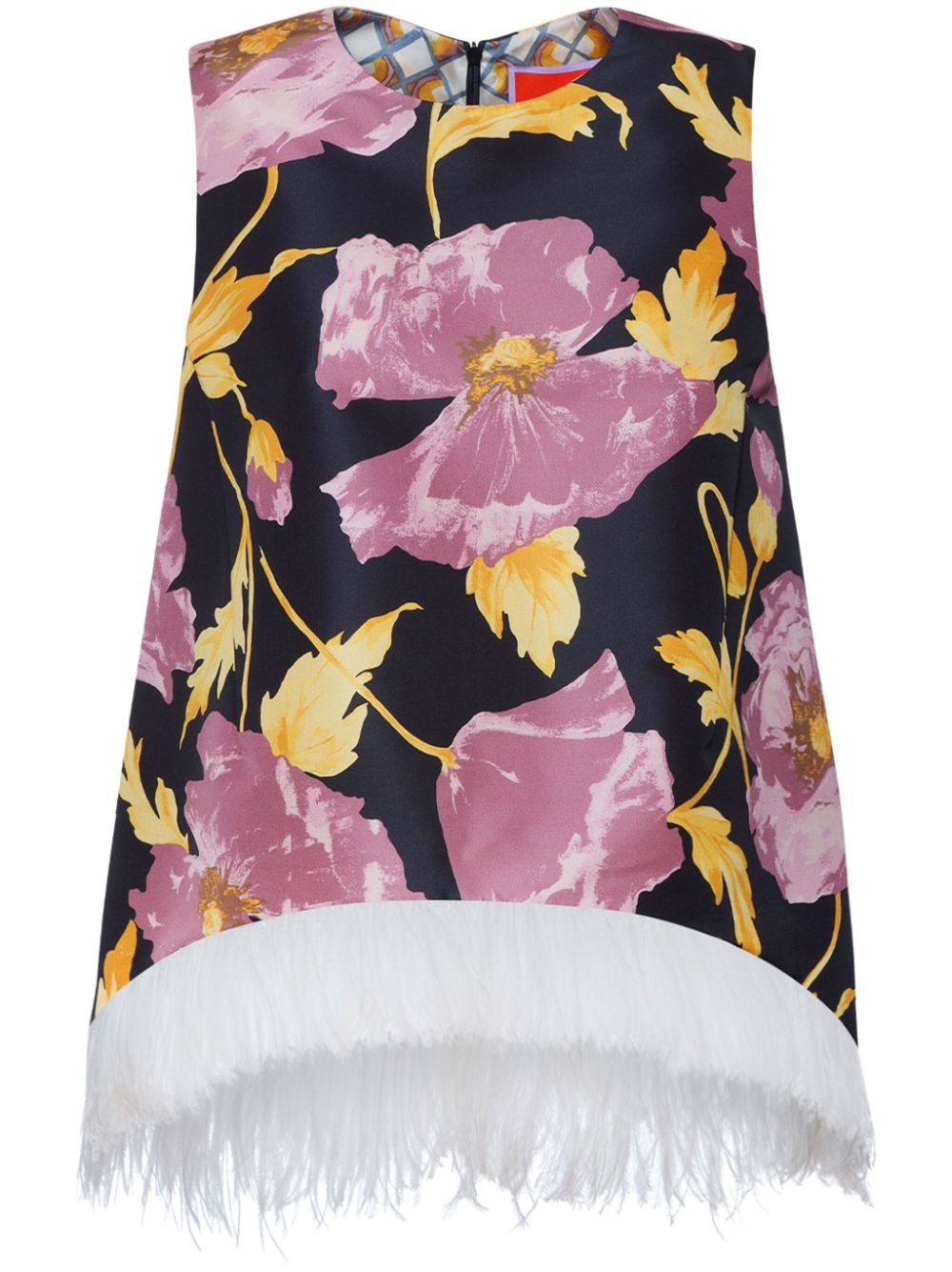 La Scala top Highlights - Black - Rear zip fastening - All-over floral print - Feather detailing - Sleeveless Made in Italy Composition Polyester 100%, Ostrich Feather 100%