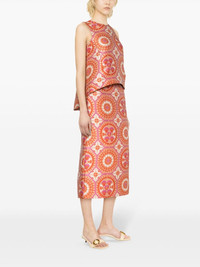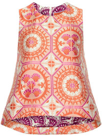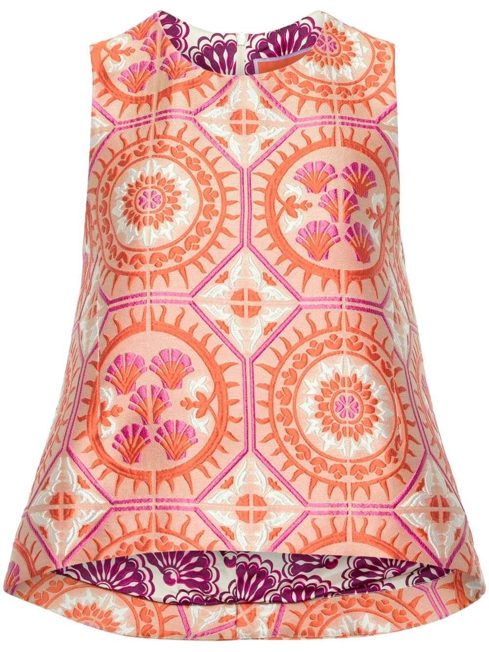 La Scala trapeze blouse Highlights - Beige/multicolour - Textured finish - Patterned jacquard - Trapeze silhouette - Round neck - Concealed rear zip fastening - Sleeveless - High-low hem - Full lining Made in Italy Composition Outer: Polyester 72%, Cotton 21%, Silk 4%, Polyamide 3% Lining: Polyester 100% SIZE & FIT Model measurements Height 5 ft 10 in(1.79 m) Bust/Chest 31.49 in(80 cm) Hips 35.03 in(89 cm) Waist 23.62 in(60 cm) FittingInformation Designed for a slim fit that sits just away from the body offering a close yet comfortable fit Made from a midweight non-stretch fabric This piece fits true to size – take your usual size Washing instructions Dry Clean Only