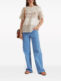 Lacey House embroidered T-shirt Highlights - Off-white/beige - Cotton blend - Embroidered design - Crew neck - Short sleeves - Concealed rear zip fastening - Straight hem Made in Italy Composition Cotton 80%, Polyamide 20%