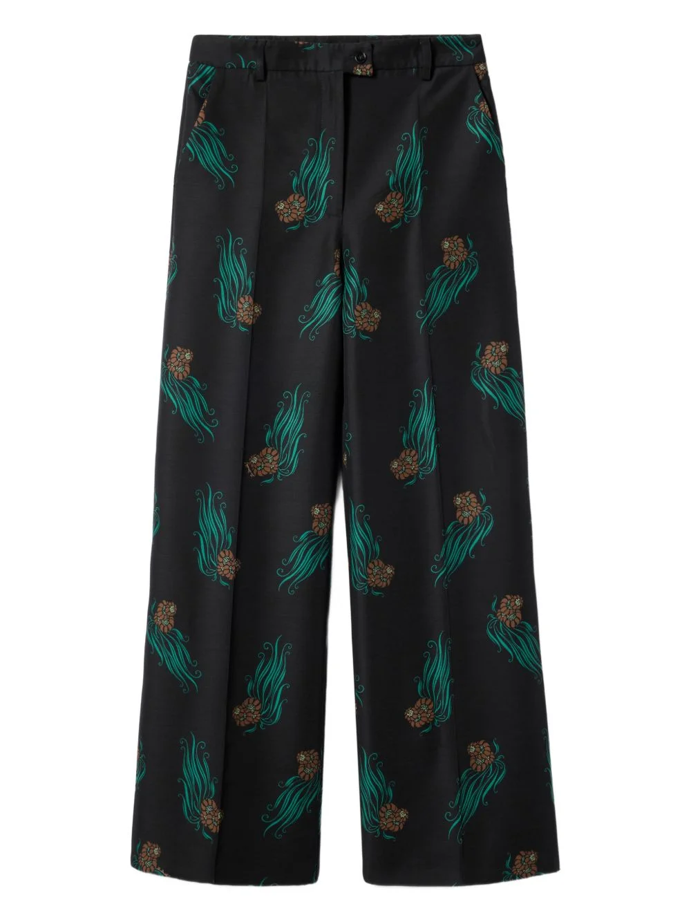 Let Loose floral-print trousers Highlights - Black - Floral print - Button fastening - Belt loops Made in Italy Composition Wool 76%, Polyamide 24% Washing instructions Read Manufacturer Guidelines