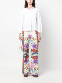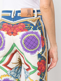 Liberty-print flared jeans Crafted in Italy, La DoubleJ's flared jeans showcase the brand's affinity for ebullient styles. Characterised by their colourful Liberty print, they offer a contemporary take on a retro-inspired silhouette. Highlights - White/multicolour - Cotton - Denim - Abstract pattern print - High-waisted - Concealed fly and button fastening - Classic five pockets - Logo patch to the rear - Flared hem Made in Italy Composition Cotton 100% SIZE & FIT Model measurements Height 5 ft 9 in(1.76 m) Bust/Chest 33.07 in(84 cm) Hips 34.64 in(88 cm) Waist 25.59 in(65 cm) FittingInformation Designed with a flared hem, these jeans allow for a close fit at the waist with a slim fit over the leg and widening towards the hem Sturdy and hard-wearing, this denim piece offers no stretch This piece fits true to size – take your usual size Washing instructions Machine Wash
