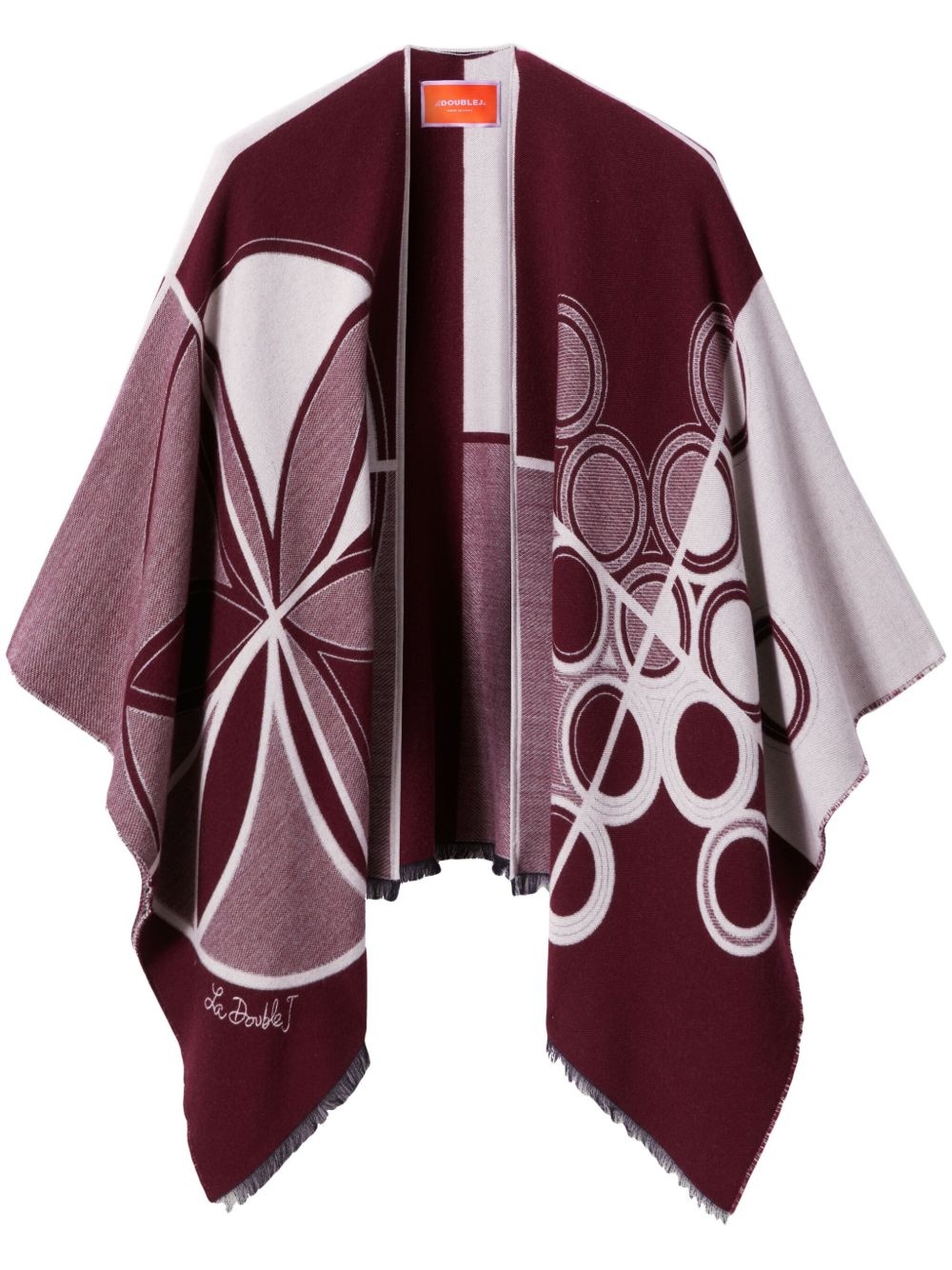 logo-print cape Highlights - Burgundy - Abstract pattern print - Open front - Long sleeves - Flared hem Made in Italy Composition Wool 96%, Silk 4%