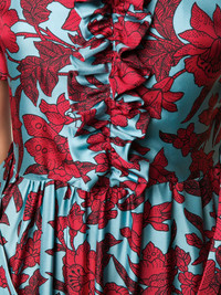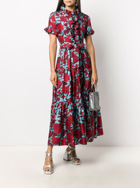 Long and Sassy floral ruffle dress Lilium Turchese/red silk floral print tiered design gathered detailing ruffled detailing high neck short sleeves tied waist Made in Italy Composition Silk 100% SIZE & FIT Model measurements Height 5 ft 11 in(1.8 m) Bust/Chest 33.07 in(84 cm) Hips 37.4 in(95 cm) Waist 25.19 in(64 cm) Washing instructions Dry Clean Only