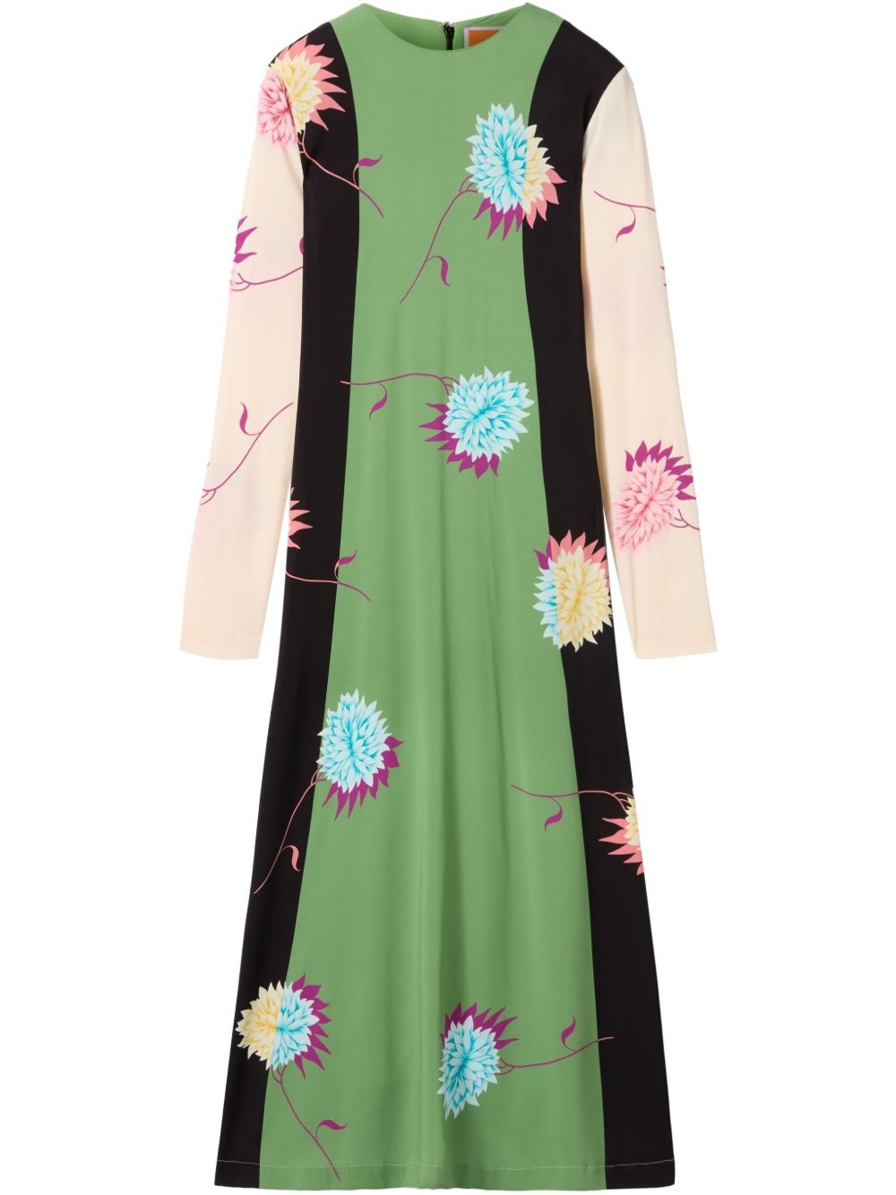 long-sleeve swing dress Highlights - Asparagus green - Rear zip fastening - Crew neck - All-over graphic print Made in Italy Composition Viscose 96%, Elastane 4%