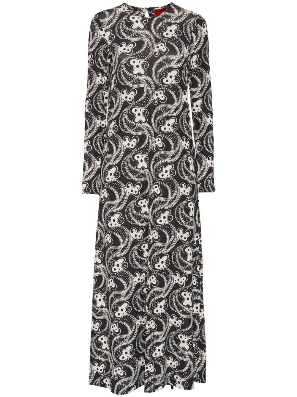 long-sleeve swing dress Highlights - Black/white - Stretch-design - Jersey texture - All-over graphic print - Single rear button fastening - Crew neck - Long sleeves - Two side inset pockets - Ankle-length Made in Italy Composition Viscose 92%, Elastane 8% Washing instructions Read Manufacturer Guidelines