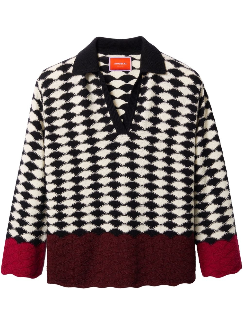 Lounge sweater Highlights - Black - Patterned jacquard - Contrasting trim - Polo collar Made in Italy Composition Cotton 100%