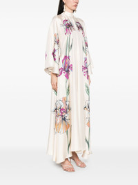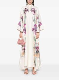 Magnifico maxi dress Highlights - Almond beige - Rear tie fastening - Two side slit pockets - All-over floral print - Long wide sleeves Made in Italy Composition Silk 100% SIZE & FIT Model measurements Height 5 ft 10 in(1.78 m) Bust/Chest 33.46 in(85 cm) Hips 36.22 in(92 cm) Waist 23.22 in(59 cm) FittingInformation Designed to be unstructured, offering a loose fit throughout Made from a lightweight non-stretch fabric