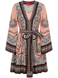 Magnifico mini dress Highlights - Light pink - Belted waist - All-over graphic print - V-neck - Long sleeves Made in Italy Composition Silk 100%