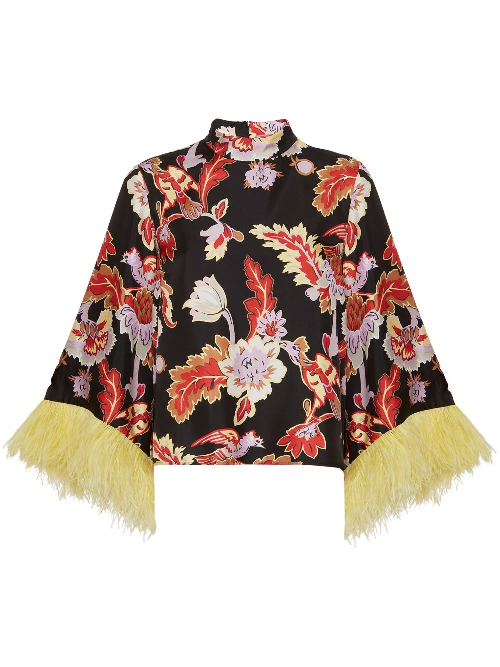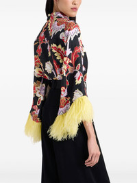 Make An Exit blouse Highlights - Black - Concealed rear zip fastening - All-over floral print - Feather detailing - Three-quarter length sleeves Made in Italy Composition Silk 98%, Ostrich Feather 2%