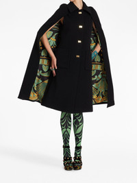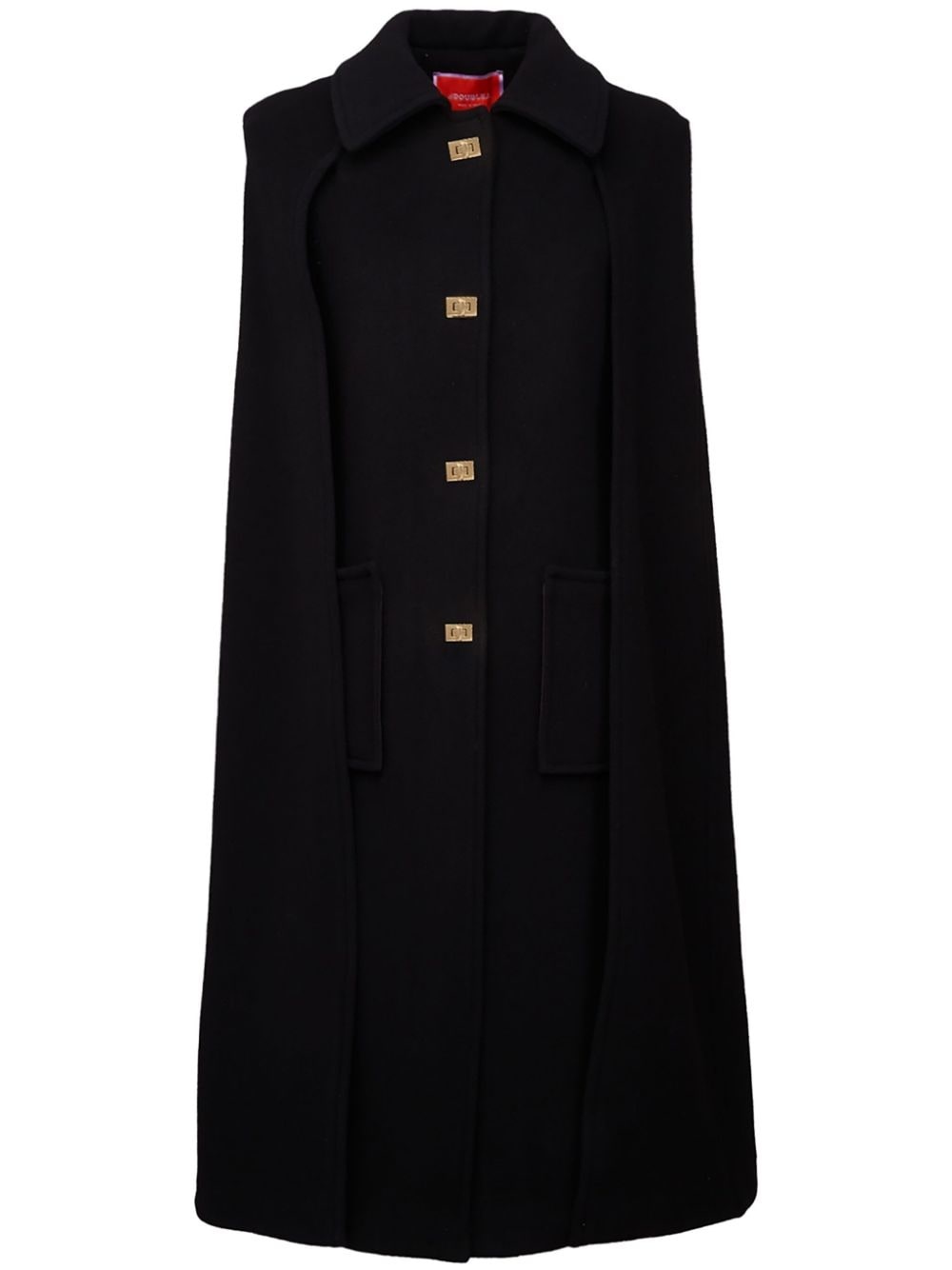 Milano cady cape La DoubleJ takes a refreshingly minimalist route in creating the Milano cape. Made from wool-blend cady, it is cut to a streamlined silhouette with high side slits, allowing hand accessibility and for the vibrant lining to peek through. A built-in gilet compounds the protective, enveloping quality. Highlights - Black - Virgin wool blend - Cady texture - Cutaway collar - Front clasp fastening - Two front patch pockets - Side slits - Below-knee length - Straight hem Made in Italy Composition Virgin Wool 75%, Polyamide 25% Washing instructions Read Manufacturer Guidelines