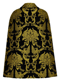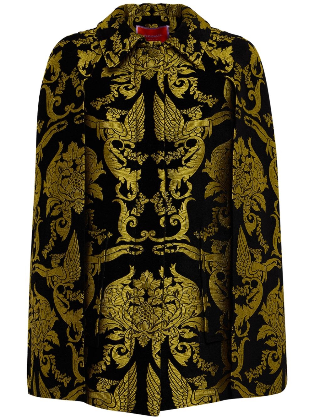Milano Mini cape coat Highlights - Black - Gold-tone - Cotton blend - Patterned jacquard - Concealed front fastening - Classic collar - Cape design - Two side patch pockets - Straight hem Made in Italy Composition Viscose 34%, Cotton 23%, Recycled Polyester 22%, Polyester 21%