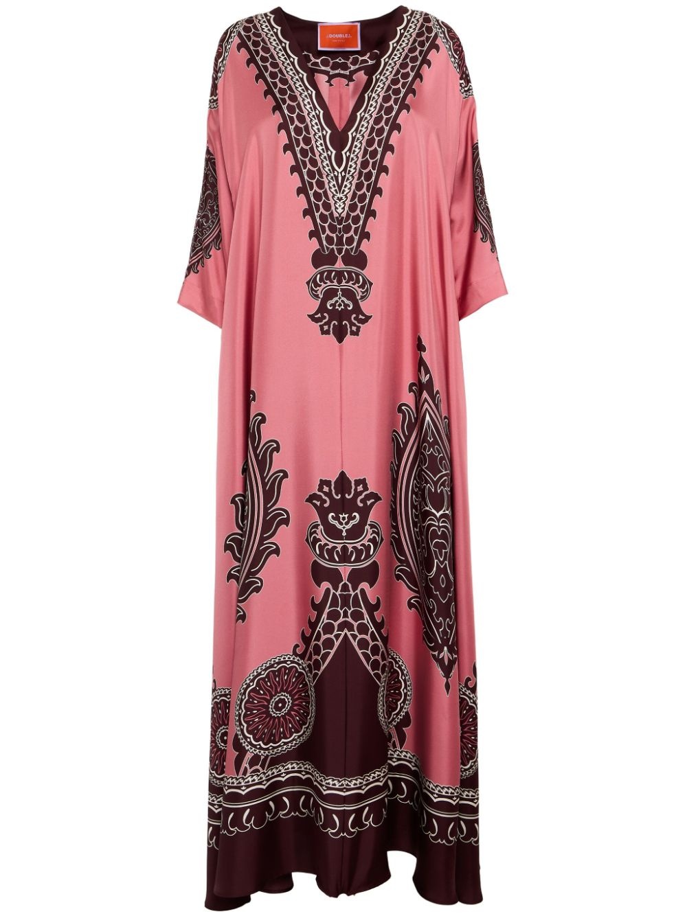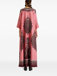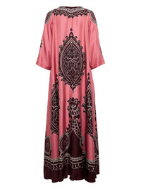 Muumuu maxi dress Highlights - Flamingo pink - Black - Silk - All-over graphic print - Round neck - Long sleeves - Flared hem Made in Italy Composition Silk 100%