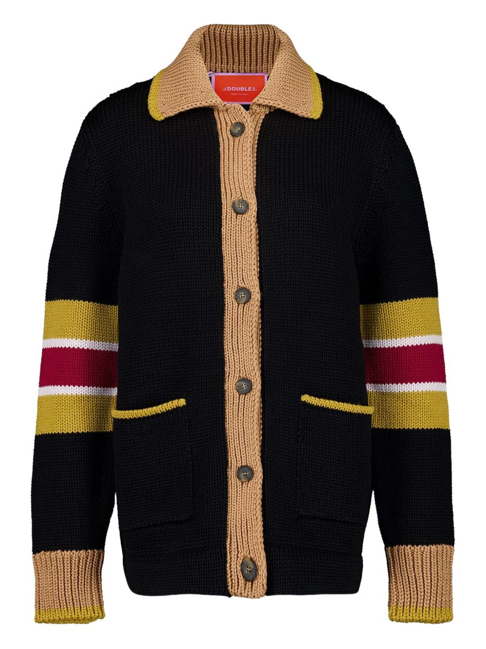 No Fuss cardigan Highlights - Black - Front button fastening - Two front patch pockets - Ribbed cuffs and hem - Stripe detailing Made in Italy Composition Virgin Wool 100% Washing instructions Read Manufacturer Guidelines