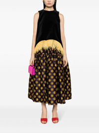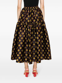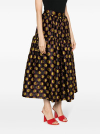 Oscar graphic-print skirt Highlights - Black/mustard yellow - All-over graphic print - Elasticated waistband - Two side slit pockets - Flared hem - Mid-length Made in Italy Composition Polyester 80%, Metal (Other) 9%, Silk 7%, Polyamide 4% SIZE & FIT Model measurements Height 5 ft 10 in(1.78 m) Bust/Chest 30.7 in(78 cm) Hips 36.22 in(92 cm) Waist 25.59 in(65 cm) Measurement LENGTH 35.82 in(91 cm) WAIST 25.98 in(66 cm) HIPS 45.66 in(116 cm) FittingInformation This maxi-length skirt is intended to be worn high on the waist The partially elasticated waistband offers increased movement and comfort at the waist Made from a midweight non-stretch fabric This piece fits true to size – take your usual size Washing instructions Dry Clean Only