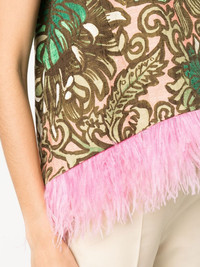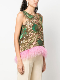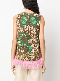 painterly-print feather-detail top light olive green stretch-cotton painterly print feather-trim detailing boat neck sleeveless high-low hem Made in Italy Composition Feather 100%, Cotton 98%, Spandex/Elastane 2% SIZE & FIT Model measurements Height 5 ft 10 in(1.79 m) Bust/Chest 33.07 in(84 cm) Hips 35.82 in(91 cm) Waist 24.01 in(61 cm) FittingInformation This piece fits true to size. We recommend you get your regular size Cut for a loose fit Made with a mid-weight fabric Washing instructions Machine Wash