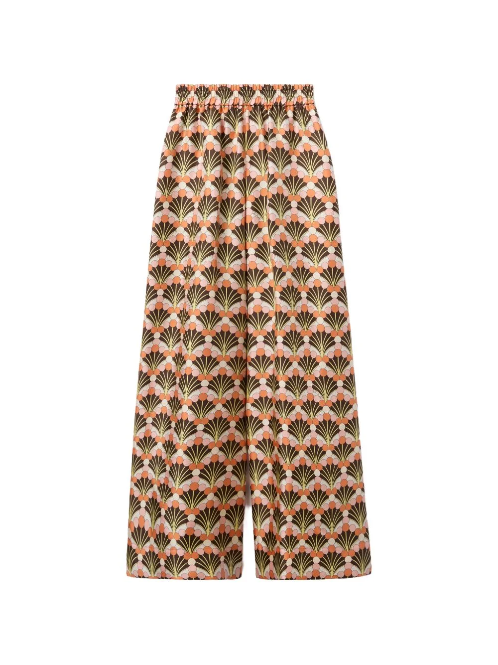 palazzo pants Highlights - We cannot take credit for inventing the palazzo pant silhouette, but we will take credit for making them cool again. these trousers sit on the waist and fall flared, with a wide, breezy fit through the legs – like a skirt, but with the comfort of pants. crafted in our woven silk twill from the shoes of lake como, this sophisticated florette print pair is prime for sauntering along the riviera this summer paired with a white tee or the matching make an exit top. - Garment fit: oversized - Silk twill - Elasticated waist - Concealed side pockets - Wide cut - 100% silk - Unlined - Made in italy Made in Italy Composition Silk 100% Washing instructions Read Manufacturer Guidelines
