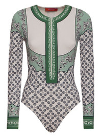 patterned surf suit Highlights - White - Half front zip fastening - Crew neck - Long sleeves - Be mindful to try on swimwear over your own garments. Made in Italy Composition Polyamide 74%, Elastane 26% Washing instructions Read Manufacturer Guidelines