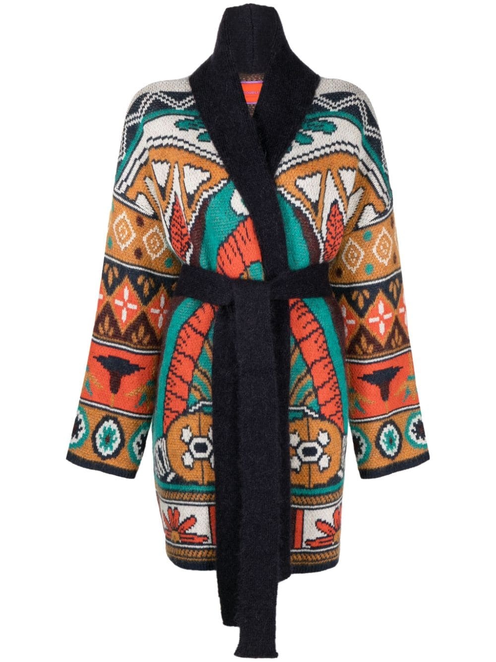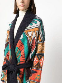 Philae Placee-jacquard cardigan Pattern and colour are two of La DoubleJ’s specialties, as showcased by this enveloping cardigan. It’s spun with merino wool and cashmere threads for a soft feel and woven with a Philae Placee jacquard ‘inspired by the island temples found in Aswan, Egypt.’ Highlights - Multicolour - Merino wool blend - Patterned jacquard - Contrasting trim - Shawl lapels - Detachable waist belt - Long sleeves - Slip pockets to the sides Made in Italy Composition Merino 40%, Viscose 25%, Polyamide 25%, Cashmere 10% SIZE & FIT Model measurements Height 5 ft 10 in(1.77 m) Bust/Chest 31.1 in(79 cm) Hips 35.03 in(89 cm) Waist 23.62 in(60 cm) FittingInformation Designed to be unstructured, offering a loose fit throughout Made with a midweight knit, this piece offers some stretch This piece fits true to size – take your usual size