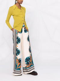 Placee placed-print palazzo trousers Italian-made, La Double J's wide leg palazzo trousers are detailed with an ornate Placee placed print. Spun from the brand's silk twill construction, they feature a comfortable elasticated waistband and two side slip pockets. Made in Italy Composition Silk 100% SIZE & FIT Model measurements Height 5 ft 10 in(1.77 m) Bust/Chest 31.1 in(79 cm) Hips 33.85 in(86 cm) Waist 24.01 in(61 cm) FittingInformation This piece fits true to size. We recommend you get your regular size Designed to be fitted at the waist, loose over the leg Made with a lightweight non-stretch fabric Washing instructions Dry Clean Only