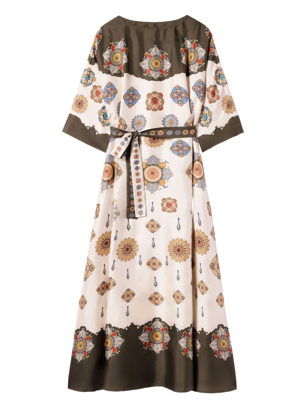placed floral print silk dress Highlights - Off-white - Silk - Placed floral pattern - Round neck - Three-quarter sleeves - Self-tie belt Made in Italy Composition Silk 100% Washing instructions Read Manufacturer Guidelines