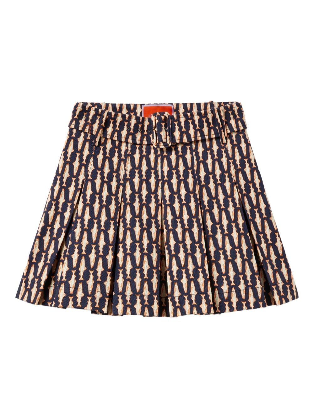 pleated fish-print skirt Highlights - Dark blue - Fish pattern - Pleated design - Belted waist - Cotton material - A-line shape Made in Italy Composition Cotton 98%, Elastane 2% Washing instructions Read Manufacturer Guidelines