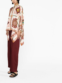 printed asymmetric shirt La DoubleJ's love for bold prints is shown on this asymmetric shirt from the brand's SS23 collection. Its design is inspired by a classic Italian-made silk square scarf, with a fuss-free silhouette drapes off the arms, and is decorated with a graphic print that remembers Neopolitan tiles. Highlights - White - Silk - All-over graphic print - Round neck - Front button fastening - Asymmetric hem Made in Italy Composition Silk 100% SIZE & FIT Model measurements Height 5 ft 10 in(1.78 m) Bust/Chest 29.92 in(76 cm) Hips 34.64 in(88 cm) Waist 23.62 in(60 cm) FittingInformation Designed to be unstructured, offering a loose fit throughout Made from a midweight non-stretch fabric This piece fits true to size – take your usual size Washing instructions Dry Clean Only