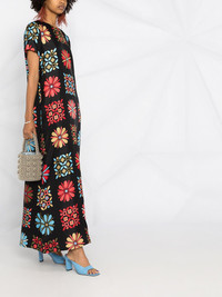 printed silk maxi dress Highlights - Black - Silk - Abstract pattern print - Round neck - Short sleeves - Maxi Made in Italy Composition Silk 100% SIZE & FIT Model measurements Height 5 ft 10 in(1.77 m) Bust/Chest 31.49 in(80 cm) Hips 36.22 in(92 cm) Waist 22.44 in(57 cm) FittingInformation This piece fits true to size. We recommend you get your regular size Cut for a loose fit Made with a mid-weight non-stretch fabric Washing instructions Dry Clean Only