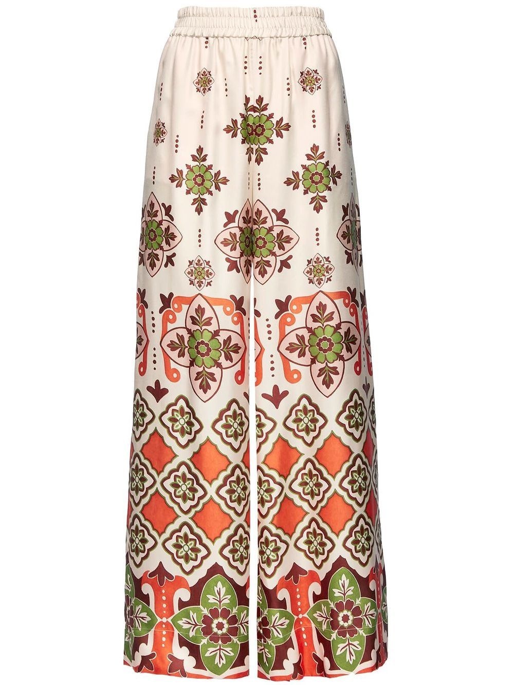 printed silk palazzo trousers La DoubleJ's free-spirited aesthetic is captured in the wide, breezy silhouette of these palazzo trousers. Crafted from silk twill, they're decorated throughout with vibrant geometric patterning that emphasises the relaxed mood. Made in Italy Composition Silk 100%