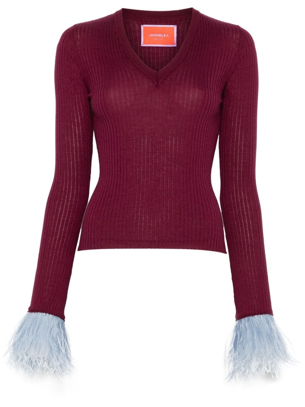 ribbed jumper Highlights - Bordeaux red - Cashmere-silk blend - Ribbed knit - V-neck - Long sleeves - Ribbed cuffs and hem Made in Italy Composition Cashmere 70%, Silk 30% SIZE & FIT Model measurements Height 5 ft 10 in(1.78 m) Bust/Chest 33.85 in(86 cm) Hips 36.61 in(93 cm) Waist 26.77 in(68 cm) FittingInformation Designed for a close fit throughout Made with a lightweight knit, this piece offers some stretch