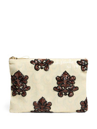 Ruffle clutch bag Highlights - Light beige - Top zip fastening - Front handle - Sequin embellishment Made in Italy Composition Polyester 99%, Elastane 1% SIZE & FIT Measurement HEIGHT 9.05 in(23 cm) WIDTH 12.59 in(32 cm)