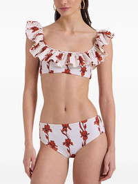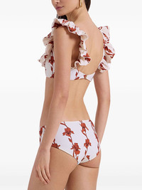 ruffle-detail bikini Highlights - White - Rear clasp fastening - Square neck - Floral print - Be mindful to try on swimwear over your own garments. Made in Italy Composition Polyamide 80%, Elastane 20%