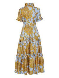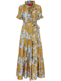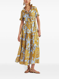 ruffle-trim floral-print dress Highlights - Light blue/yellow - Silk - Twill weave - Floral print - Ruffled trim - V-neck - Concealed side zip fastening - Belted waist - Two side slit pockets - Short sleeves - Tiered skirt - Ankle-length - Straight hem Made in Italy Composition Silk 100%