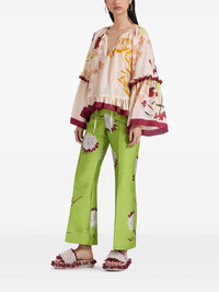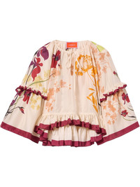 ruffled blouse Highlights - Light beige - Self-tie fastening - Long wide sleeves - Contrasting trim - Floral print Made in Italy Composition Silk 100%