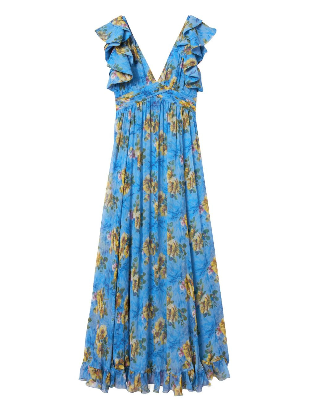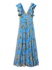 ruffled-details floral-print maxi dress Highlights - Light blue - Floral print - V-neck - Ruffled sleeves - Ruffled hem - Silk Made in Italy Composition Silk 100% Washing instructions Read Manufacturer Guidelines