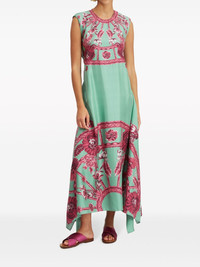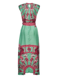 San Carlo belted silk dress Highlights - Mint green/raspberry pink - Silk satin - All-over floral print - Round neck - Detachable waist belt - Sleeveless - Rear button fastening - Asymmetric hem - Ankle-length Made in Italy Composition Silk 100%