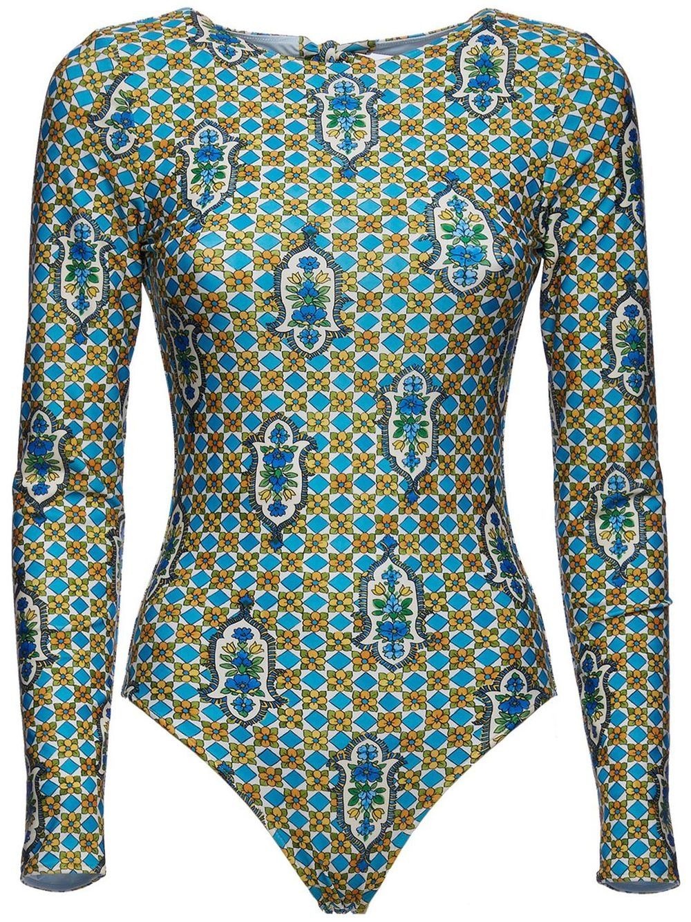 Santachiara surf suit La DoubleJ's penchant for bold patterned designs is evident in the vibrant construction of this swimsuit. Crafted from a quick-drying, stretch swim fabric, it's decorated with a floral geometric print. Made in Italy Composition Polyamide 80%, Elastane 20%