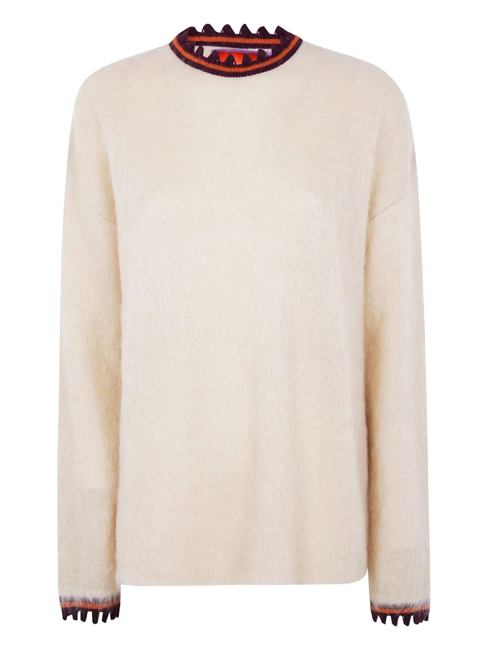 scalloped-trimmed mohair wool sweater Highlights - Off-white - Mohair wool - Scalloped trim - Ribbed trim - Round neck - Long sleeves Imported Composition Mohair 100% Washing instructions Read Manufacturer Guidelines