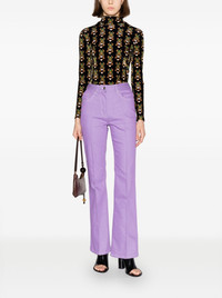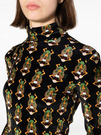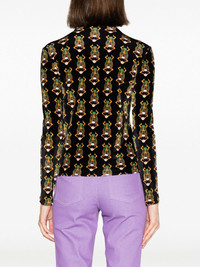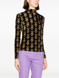 scarab-motif velvet T-shirt Influenced by a recent trip to Egypt, La DoubleJ presents this velvet top decorated with scarab beetles: an ancient Egyptian symbol representing birth, life, death and resurrection. The eye-catching pattern, along with the inspiration behind it, nods to the brand's bold and eclectic spirit. Highlights - Black/multicolour - Velvet - Stretch-design - Patterned jacquard - Stand-up collar - Long sleeves - Straight hem Made in Italy Composition Polyamide 85%, Elastane 15% SIZE & FIT Model measurements Height 5 ft 10 in(1.77 m) Bust/Chest 31.1 in(79 cm) Hips 35.03 in(89 cm) Waist 23.62 in(60 cm) FittingInformation Designed for a slim fit that sits just away from the body offering a close yet comfortable fit Made from a midweight stretch fabric, this piece offers elasticity and flexibility when worn This piece fits true to size – take your usual size Washing instructions Dry Clean Only